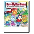 I Love My New Home coloring book fun pack with unimprinted 4-pack of crayons, packaged together in a convenient polybag. No assembly required. Book is 8" x 10 1/2" in size and features a full color cover and 16 pages of text containing coloring, games and activities. Books are recommended for children ages 3 and up.