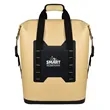 This backpack cooler is made from thick, coated, waterproof material and features an easy access open top design with adjustable padded backpack straps, top side handle, and utility loops on the front. It has super thick insulation, a molded bottom, and a durable zipper to keep contents cold for extreme amounts of time. Holds 18-24 cans.