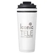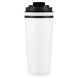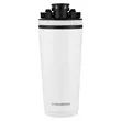 Create the perfect protein drink using this 26 ounce shaker bottle! Made of stainless steel, this item is double-wall vacuum insulated and can keep drinks hot for 12 hours or cold for 30 or more hours. Included are a double-snap lid with a removable agitator, a flip-up carry handle, and internal measurement markings. Unlike other bottles out there, this item will not sweat or absorb odors and it can fit inside any standard-sized cup holder. This product will easily become a post-workout must-have.