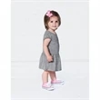 5.0 oz. 100% combed ringspun cotton 1x1 baby rib dress for toddlers (Heather is 88% combed ringspun cotton/12% polyester). White is sewn with 100% cotton thread. Side seam construction. EasyTear™ label. CPSIA compliant tracking label in side seam. 1/4" single needle binding on neck. Double needle hem ruched sleeves. 1/4" single needle binding on gathered skirt hem.