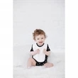 10.5 oz. 100% cotton terry bib. Contrast trim color binding. Reinforced two snap closure. White is sewn with 100% cotton thread. EasyTear™ label. CPSIA compliant tracking label in garment.