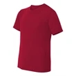 Kids will look cool and feel even cooler when they wear this comfy short sleeve t-shirt from Jerzees®. Made of 5.3 oz. 100% polyester, it's label-free, lightweight and has the softness you desire and moisture-wicking and odor control properties will keep them dry. It features a seamless body with set-in sleeves, 1" x 1" rib collar, double needle overstitched front neck, sleeves and bottom. Choose from a variety of sizes and colors. Blank product.