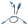 This durable wrapped PVC cable includes the following connectors: USB type A, USB type C and a 2-in-1 connector that is compatible with micro USB and Apple® devices. Apple® is A Registered Trademark Of Apple Inc.