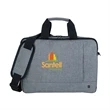 Tote your tech to work or school in style in the Pierce briefcase by Kapston(TM). This 14 5/8" x 11" x 2 3/8" carry is made from tough 600 Denier polyester. Features include a zippered closure, padded laptop compartment, front pocket, slots for pens and business cards, padded handle and an adjustable shoulder strap. Great for laptops, tablets and similar devices. Choose from gray or navy and add your school, sports team, organizational or company logo or message to customize.