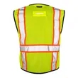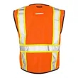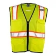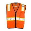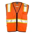 Kishigo 6 Pocket Contrast Class 2 Vest ul)100% polyester mesh back with solid front. Plastic zipper front closure. 2'' wide reflective material with 3'' contrasting material. Left chest mic tab. Reinforced D-ring access on back. Two lower outside patch pockets with flaps. Right chest 2-tier, 4-division pocket. Left chest radio pocket with hook & loop closure. Two inside lower patch pockets. Lime (1580), Orange (1581). ANSI 107 Type R Class 2 Compliant "CLICK HERE to watch product video"