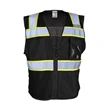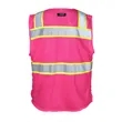 Kishigo EV Series® Enhanced Visibility 3 Pocket Mesh Vest ul)100% polyester mesh. Zipper front closure. 2'' wide reflective material with 3'' high visibility contrasting lime. 4'' hip slits for added mobility. Left chest mic tab. Left chest radio pocket and clear ID holder with flap. Inside right chest 2-tier, 4-division pocket. Lower inside left reinforced tablet pocket with load bearing strap. Black/ Lime (B150), Royal Blue/ Lime (B152), Red/ Lime (B153), Pink/ Lime (B156). Non-ANSI Compliant "CLICK HERE to watch product video"