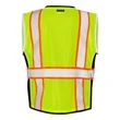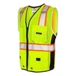 Heavy duty Lime color safety vest with 2 outside cargo pockets.100% Ultra-Cool™ polyester mesh. Zipper front closure with durable webbing reinforcement. 2" wide Silver reflective materials with 3" breathable contrasting color. Reflective trim around arms and piping down black side panels. 2 inside patch pockets. ANSI/ISEA 107 Class 2 Compliant. Blank product.