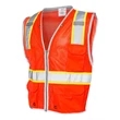 The ML Kishigo Brilliant Series Heavy-Duty Lime Vest provides maximum visibility with the 2" wide VizLite™reflective tape with contrasting color. It's constructed of durable, breathable 100% polyester mesh. Features include: zipper closure, 2 lower outside cargo pockets with adjustable flaps, 2-tier pencil pocket, left chest radio pocket, 2 inside patch pockets and reinforced webbing for added strength. Blank.