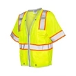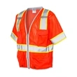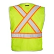 Kishigo Premium Brilliant Series® X Back Dual Compliant Vest ul)Ultra-Cool™ 100% polyester mesh. Brilliant Trim reflective edging improves low light visibility. Plastic zipper front closure. X back configuration. 2'' wide reflective material with 3'' contrasting color. Left chest mic tab. Two lower outside patch pockets with flaps. Inside right chest 2-division pocket. Left chest radio pocket with hook & loop tab closure. ANSI 107 Type R CSA Z96 Class 2 Compliant