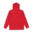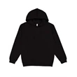 LAT Elevated Basic Hoodie ul)7.4 oz./yd2, 60/40 combed ringspun cotton/polyester. CVC colors are 55/45 combed ringspun cotton/polyester. 100% cotton face on all dyed fabrics (colors). 60/40 cotton/polyester face on all heathers and printed fleece. 3-end fleece. Jersey lined hood with matching flat braided drawcord. Jersey fabric back neck tape. Side seams. Pouch pocket. Double needle hem on hood and pouch pocket. Straddle stitched neck, armholes, sleeve cuffs and bottom band. Back locker patch. EasyTear™ label.