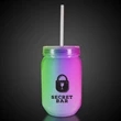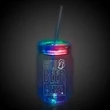 Featuring multi-colored LEDs built into the top to illuminate any drink you serve up, each 20 oz. mason jar has a clear plastic lid and straw, making it perfect for signature drinks. This item is not safe for the microwave or dishwasher but can be hand-washed and used over and over again! Choose from multi-colored light settings, a color changing color setting or individual red, blue or green light settings. Three, AG13 batteries are included, installed and can be replaced. Add your company name, logo or advertising message to the jar via our imprint process.