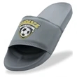 This slide has a dead-fit strap construction and comfortable foam padding with an EVA molded footbed. It can have a heat transfer logo on top and personalization with names/numbers on the side.