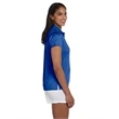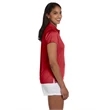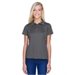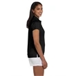 100% polyester; Anti-microbial, anti-static, anti-odor and UPF 50 protection; Quick drying and breathable; Proven to absorb, wick and evaporate more moisture than cotton;Sideseamed; Double-needle topstitch on bottom hem and side vents; Clean-finished inside neck with self-fabric neck tape; Set-in sleeves with open hem; Two-button placket;