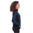 100% polyester sweater knit bonded to fleece - 340 gsm ; Custom Spyder knit jacquard; Brushed microfiber inner collar;Iconic Spyder bug on lower left hem; Hidden on-seam front pockets; Princess seam details; Stretch fabric panels at underarm and side body; Branded Spyder zipper pull; Modern fit;