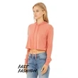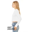 3.8 oz., 50% Polyester, 25% airlume combed and ringspun cotton, 25% rayon, 40 singles;Sideseamed; Cuffed sleeve; Raw bottom hem; Modest cropped body; Tear away label; Pre-shrunk; BELLA+CANVAS uses sustainable manufacturing processes with Blue Sign certified dyes, efficient dye houses that adhere to the state of California's EPA regulations around waste water treatment and usage, and cutting facilities in Los Angeles that run on partial solar power with comprehensive recycling programs for paper waste and fabric scraps.;