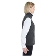 8 oz/yd2 / 270 gsm, 96% polyester, 4% spandex bonded with 100% polyester anti-pill fleece with water-repellent finish;Inside storm placket with fleece chin guard; Center front reverse coil zipper with autolock slider and reflective toggle; Audio port access through inside left pocket; Lower pockets with zipper closures and reflective toggles;