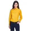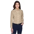 4.6oz/yd2 / 155 gsm, 55% cotton, 45% polyester twill; Stain-release; Wrinkle-resistant performance;Extra stitching at seams and buttons; Flat-felled seam finishing; Signature horn-style buttons with Harriton logo; Darts and princess seams; Two-button adjustable cuffs; Spread collar; Carbon neutral style in partnership with Green Story third party verified carbon offset program. For more information click on carbon neutral link above MSRP. ;