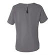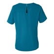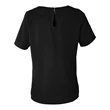 4.5 oz./yd2, 155 gsm; 100% polyester crepe;Center back keyhole detail with 2-button closure; Dyed-to-match pearl buttons; Side vents;