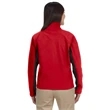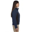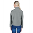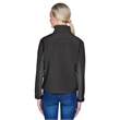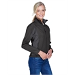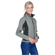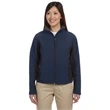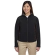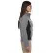 9.5 oz./yd2 / 320 gsm, 3-Layer 96% polyester, 4% spandex bonded to polyester microfleece with inner membrane; 1,000 mm water-resistant rating;Interior storm flap with chin guard; Open hem with dropped back bottom; Open hem cuffs; Set-in sleeves; Zipper front pocket; Feminine fit;