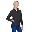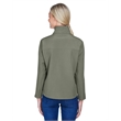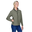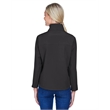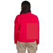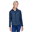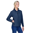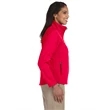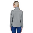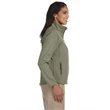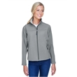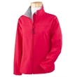 9.5 oz./yd2 / 320 gsm, 3-Layer 96% polyester, 4% spandex bonded to polyester microfleece with inner membrane; 1,000 mm water-resistant rating;Interior storm flap with chin guard; Open hem with dropped back bottom; Open hem cuffs; Set-in sleeves; Zipper front pocket; Feminine fit;