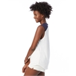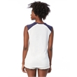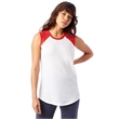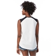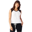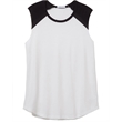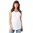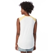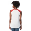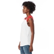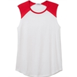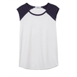 4.9 oz.; 50% cotton, 50% polyester; Vintage jersey;Color blocking at neckline & shoulders; Raw edge sleeves;