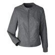 Body: 3.5 oz./yd2 / 120 gsm, 100% polyester dobby; Lining: 100% polyester tafetta; Water resistant;Center front coil zipper with autolock slider and dop zipper pul; Lower front zippered pockets; Dyed-to-match rib trim at cuffs ; Metal snap closure at top and bottom placket;