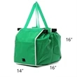 Made of earth-friendly material. Easy to clean, you just wipe with a damp cloth. Fold flat to slip easily into a glove box or the side of a seat. The front pocket has plenty of room for wallets, cell phones or coupons. Featuring mold and mildew resistant. Each bag holds up to 40 lbs. Perfect for shopping clubs and other stores that don't supply bags.