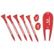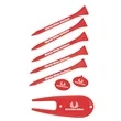 Create a swinging golf-themed branded promotion that won't break your budget with the Leaderboard Pak! This polybagged kit features five 2 3/4 wooden tees, two ball markers and a dual-prong divot repair tool -- all with your school, sports team, organizational or company logo, emblem or message. A great giveaway for corporate or charity sponsored golf tournaments or as a gift from a favorite course of pro shop. Select from a range of vivid colors and shades.