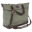 Kick back, relax and travel in true timeless style with the upscale look and versatility of this leather relaxed travel bag. It's made using cotton canvas with genuine leather accents and features a secure zippered closure, four exterior slip pockets, an interior zippered pocket, 17" handles, a 48" removable and adjustable strap and a non-woven dust cove. It measures a generous 24" top x 18" bottom x 16" height x 8" diameter, so packing everything you need is easy with this bag.