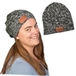 Advertise your brand with this exclusive LEEMAN™ heathered knit beanie to grab extra attention for your company at any marketing event! Made of an acrylic blend knit, this gray hat features a polyurethane faux leather patch that can be debossed with your unique imprint. This is a great winter promotion for ski lodges, winter apparel outfitters and other outdoor recreation programs or businesses. Hand wash only and do not iron. Dimensions: (8.75"w x 7.5"h)