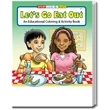 Let's Go Eat Out coloring book fun pack with unimprinted 4-pack of crayons, packaged together in a convenient polybag. No assembly required. Book is 8" x 10.5" in size and features a full color cover and 16 pages of text containing coloring, games and activities. Books are recommended for children ages 3 and up.