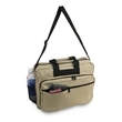 Liberty Bags Briefcase Portfolio 600D polyester 16" x 12 1/2" x 3 1/2"Single zippered main compartmentMulti-use organizer inside front pocketSide mesh water bottleID slot on backsideReinforced hand carry strapNon-branded label/tag