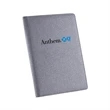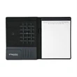 Linen cover tech accessory organizer portfolio notebook, large size. Elastic binding keeps devices and cables organized. Features four card slots and business card holder along with cash pocket and document divider. 60 page lined notepad and pen loop (pen is not included).