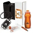 Here's a gift that's jam-packed with go-to essentials for busy work days! This 3.12" x 9.38" x 3.12" Lobby 5-piece gift set is a collection of stylish items perfect for showing gratitude and appreciation. It comes with a 24 oz. PET contoured water bottle with a textured grip and flip-top drinking spout. It also includes silicone earbuds and a silicone phone and card holder with a 16" lanyard. A 3-in-1 ballpoint pen with a capacitive stylus and LED light is also included in the set and it all comes in a light weight foldable polyester tote with 24" handles with a hook-and-loop closure. Add your company's name, logo, or emblem to the items for a boost in brand exposure! You won't go wrong with this convienent gift set!