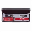 Upgrade your business with this Mag-Lite Solitaire with colored Leatherman Micra® Tool. Our useful flashlight measures a sleek 3 1/4", while our colored, stainless steel Leatherman Micra® tool is 2 1/2" when closed. This high-in multi-functional gadget features spring-action scissors, knife blades, a nail file and more. This is the ultimate gift for handymen who want to get the job done themselves. Get your custom graphics laser engraved for a polished finish. This item includes one "AAA" battery and a keyring/lanyard attachment. Give a gift that's cut from the cloth of two legendary American companies.