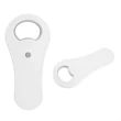 Flat ABS plastic bottle opener with magnet on back. Made of durable ABS plastic with iron opener insert. Features heavy duty magnet on back to store on refrigerator and other metal items. Designed for opening bottles and flip-top cans.