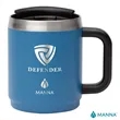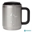 Enjoy a steaming cup of coffee, tea or hot chocolate while you're roughing it at the campsite with this rough and tumble Boulder camping mug! This 3.62" x 4.62" x 5" stainless steel mug has double-wall vacuum insulation, a wide handle and a pressure fit lid with a sliding closure. It will keep drinks hot for eight hours, or ice cold for as many as 12 - and the materials are FDA compliant and BPA free. Choose from five colors and add your organizational or company logo, emblem or message to create a fun and functional gift or giveaway for all kinds of events.