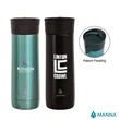 Embrace the energy of the Manna™ Verve steel tumbler. This 3" x 9.12" x 3.5" 18/8 stainless steel vessel has a thin and modern design with a twist-action sealing lid. Simply push the lid in either direction to take a sip, then push it again to create a leakproof locking seal. The double-wall insulation keeps drinks cold for 18 hours or hot for as many as 8. The BPA free construction is great for those that think green. Choose from two tones and add your organizational or company logo, emblem or message through our signature imprinting methods to customize.