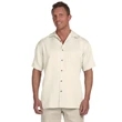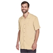 66% rayon, 34% polyester pieced bedford cord; Wrinkle-resistant;Full-button front; Synthetic coconut shell buttons; Replacement buttons; Self-fabric collar; Left-chest pocket;