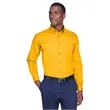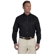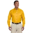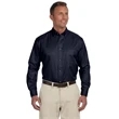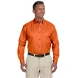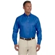 4.6oz/yd2 / 155 gsm, 55% cotton, 45% polyester twill; Stain-release; Wrinkle-resistant;Extra stitching at seams and buttons; Flat-felled seam finishing; Signature horn-style buttons with Harriton logo; Full back yoke and back pleat; Two-button adjustable cuffs; Button-down collar; Left-chest pocket; Carbon neutral style in partnership with Green Story third party verified carbon offset program. For more information click on carbon neutral link above MSRP. ;