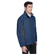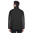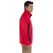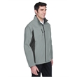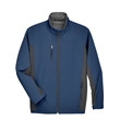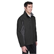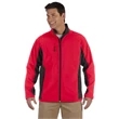 9.5 oz./yd2 / 320 gsm, 3-Layer 96% polyester, 4% spandex bonded to polyester microfleece with inner membrane; 1,000 mm water-resistant rating;Interior storm flap with chin guard; Open hem with dropped back bottom; Open hem cuffs; Set-in sleeves; Zipper front pocket; Vertical zipper on right-chest pocket;