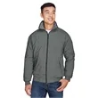 100% taslon nylon shell w/microfleece lining & lightweight polyfill insulation; Nylon-lined sleeves;Sturdy Black enamel front-zipper; InconspicuZip™ for clean embroidery; Raglan sleeves; Outside zip pockets, inside zip security pocket; YKK zippers; Banded-bottom;