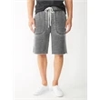 You'll score with these super-soft knee-length Burnout French terry shorts. Made of 65% cotton and 35% polyester, they have the distressed, cutoff look you want, without the danger of fraying hems. They feature a stretchy elastic waist with drawstrings, with contrast stitching at the hem. Slip these shorts on instead of sweats when the weather's warm, and you'll hit the gym or the streets looking great! Sizes: L-2X