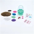 Ages 6+. Decorate, plant and grow your own mini garden in an egg-shaped mini environment. Each kit includes potting mix, quick growing chia seeds, themed stickers, dimensional accents, fun mini figures and decorative sand. Chia seeds start sprouting in 3-5 days. Finished garden measures 5 1/4" h x 3" w