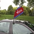 This small, versatile flag is a creative option for advertising or showing off team spirit. Double-sided graphic is dye sublimated on super poly knit fabric. Clip-on base can be used for just about anything, including sale-aisle promotion and warehouse labeling. Minimum quantity of three. Flags have a one-year warranty when used indoors and a 90-day warranty when used outdoors. One-year warranty on base and pole hardware.