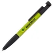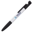 Write in style and convenience with this incredible multifunctional pen! This 8-in-1 ballpoint pen comes with a capacitive stylus tip, metric and inch rulers run along the barrel, the cap with pen clip acts as smartphone stand, a screen cleaner can be found at the top, and a reversible bit flathead and Phillips screwdriver residing under the cap. This pen has it all to get the job done! It also features a metallic finish and twist action pen mechanism. This pen can be customized by adding a school, company, or club name or logo. Become the go-to brand by making this multifunctional pen your next marketing tool!