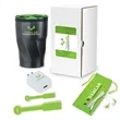 Create valuable connections at your next convention, conference or other event with the Network four-piece technology-themed gift set! This set features a 12 ounce double-wall stainless steel tumbler with a polypropylene liner and sliding sip-through lid; a pair of Whizzie™ brand cord/cable ties and luggage markers; stereo earbuds in a drawstring pouch; and a slim design USB wall charger with 5V/1A outputs. Add your organizational or company logo or message to the cup and corkscrew to customize. Each set comes in a 3.5" x 5.25" x 3.5" full color gift box.