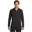 Nike Dri-FIT Stretch 1/2-Zip Cover-Up. Built for the course, gym or just around town, this cover-up performs with comfortable stretch for uninhibited movement and Dri-FIT moisture management technology for exceptional cooling The design includes a contrast collar and zipper, open cuffs and an open hem The contrast Swoosh design trademark is embroidered on the upper left sleeve Made of 7.6-ounce, 93/7 polyester/spandex Dri-FIT fabric.