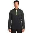 Nike Golf Therma-FIT Hypervis 1/2-Zip Cover-Up. For lightweight, allover warmth and temperature regulation, this cover-up excels with Therma-FIT fabric The chevron design across the chest provides interesting two-tone color detail Distinctive contrast color at the neck and zipper, plus a brushed interior makes this versatile layering piece a golfing essential Details include a reverse coil zip-through collar, open cuffs and an open hem The contrast Swoosh design trademark is embroidered on the upper left sleeve Made of 10.2-ounce, 100% polyester Therma-FIT fabric.