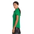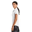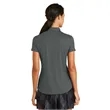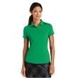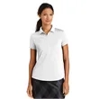 Nike Women's Dri-FIT Players Modern Fit Polo. This polo delivers timeless style and performance with ultra-smooth double pique and Dri-FIT moisture management technology Design features include a streamlined self-fabric collar and open hem sleeves Tailored for a feminine fit with a five-button placket A heat transfer contrast metallic silver Swoosh design trademark is on the left sleeve Made of 6-ounce, 100% polyester Dri-FIT fabric.